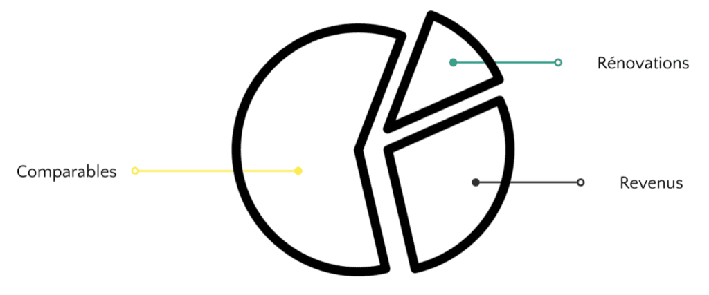 On parle donc d’une valeur marchande qui découle à environ 60 % de comparables, à 30 % des revenus, et à 10 % des rénovations.