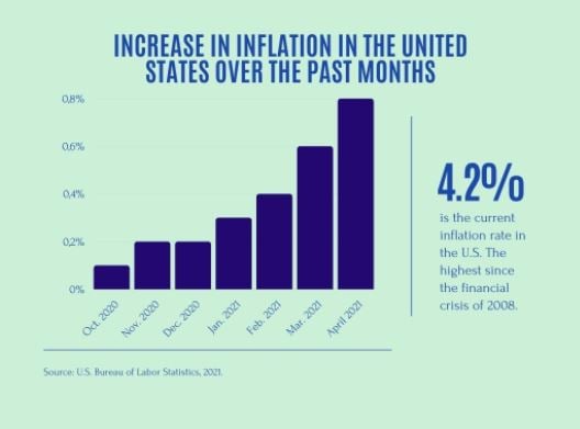 Because of the economic effects of the pandemic, inflation has increased over the past months. How? Interest rates were at low levels for years but especially over the past year in order to help Americans cover their expenses during these hard times. Now that the pandemic seems to be easing, the U.S. economic recovery is kicking into gear and energy, lumbar, pvc and other materials are increasing in price.